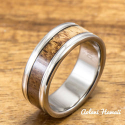- Titanium Ring with raised Hawaiian Koa Wood Inlay (6mm width, Flat Style)
