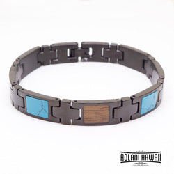 - Koa Wood Turquoise Ion Plated Black Stainless Steel Bracelet
