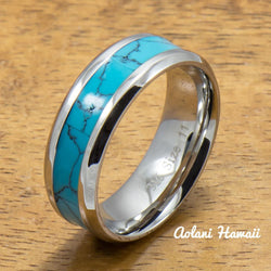 - Stainless Steel Ring with Turquoise Inlay (6mm - 8mm width, Flat style)