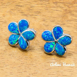 - Sterling Silver Plumeria Earring Pierce with Opal Inlay