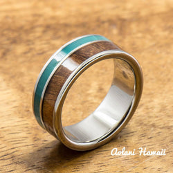- Titanium Ring with Turquoise and Hawaiian Koa Wood Inlay (8mm width, Flat Style)