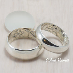 - Set of Traditional Hawaiian Hand Engraved Sterling Silver Barrel Rings (6mm & 8mm width)