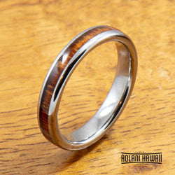 - Koa Wood Tungsten Ring with Koa Wood Inlay (4mm width,Barrel style)