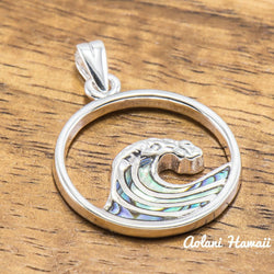 - Sterling Silver Ocean Wave Pendant with Abalone Inlay (20mm x 20mm FREE Stainless Chain Included)