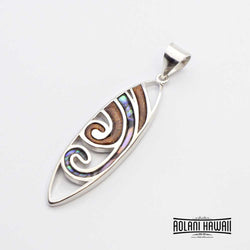 - Koa Wood Abalone Surfboard Pendant (FREE Stainless Chain Included)