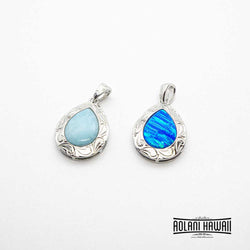 - Hawaiian Design Blue Opal / Larimar Stone Inlaid Sterling Silver Pendant