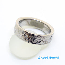 - Heavy Hawaiian Jewelry Ring - Hand Engraved Sterling Silver Flat Ring (6mm width, Flat style)