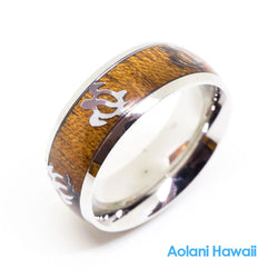 - Honu Turtle Stainless Ring with Hawaiian Koa Wood (8mm width, Barrel Style)