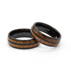 - New - HI Tech Black Tungsten Ring with Hawaiian Wood Inlay (8mm width, Dome style)