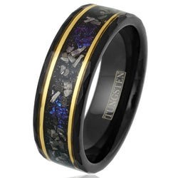 - New - Gold Flakes Black Tungsten Ring 8mm Width